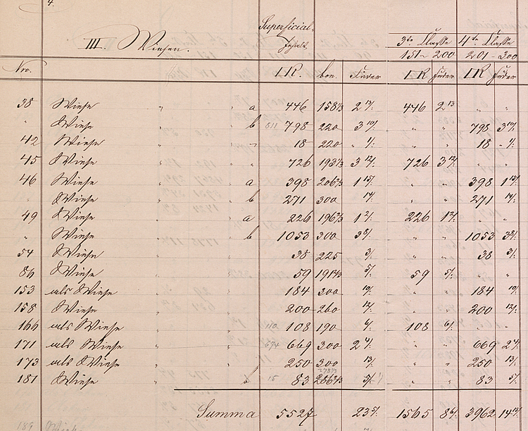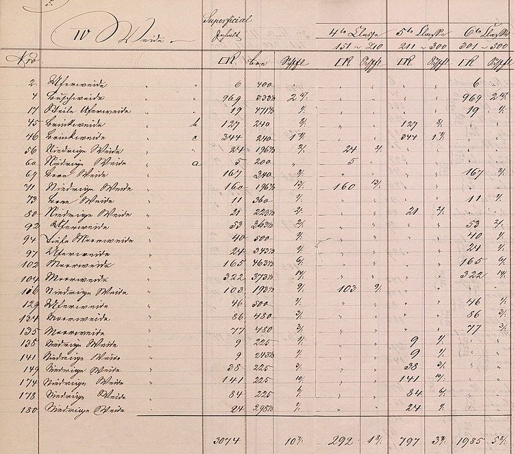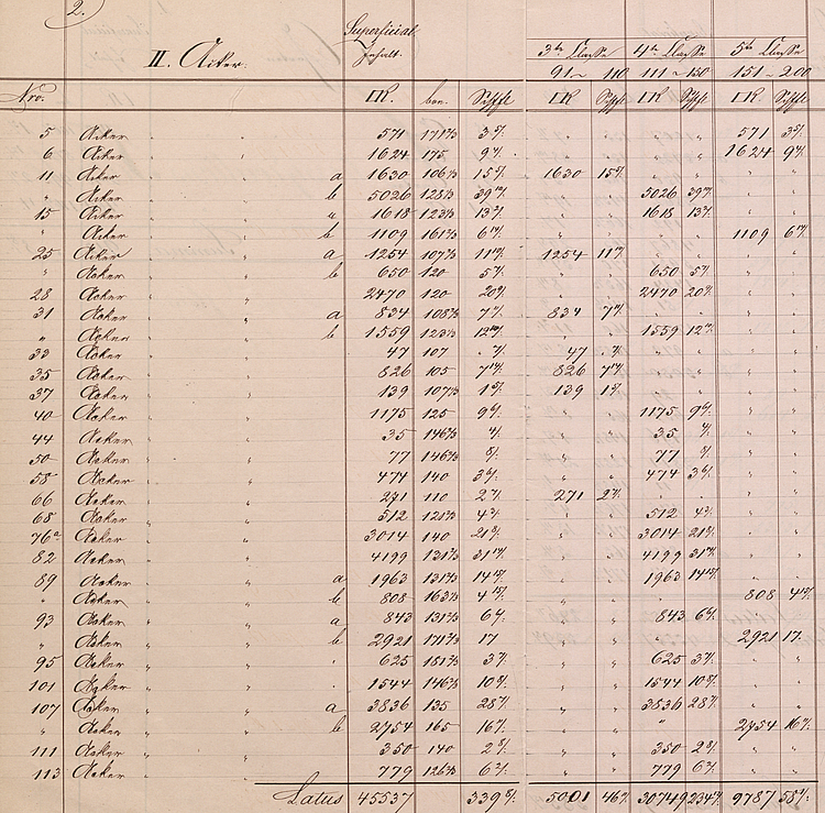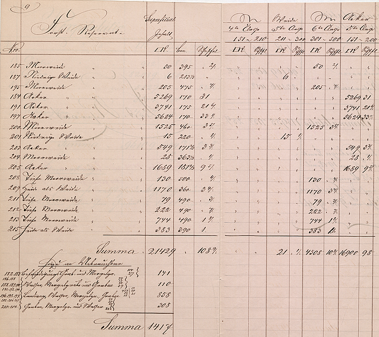 Basis für Pachtverträge war jeweils die detailgetreue Hofklassifizierung. Hier beispielgebend diejenige vom Hof Glashagen gehörig zum obigen Vertrag.