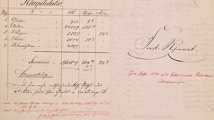 Urkundlich ist dieser Contract in duplo ausgefertigt, und das mit Unserem Handzeichen und beigedrucktem Cammer-Insiegel bestärkte Exemplar dem Erbpächter behändiget, das durch ihn vollzogenene aber, zu den Cammer-Acten genommen worden.